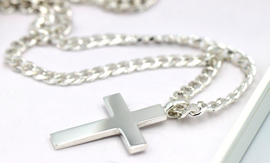 Genuine Large Heavy Sterling Silver 925 Huge Cross Pendant + Necklace Kerb Chain
