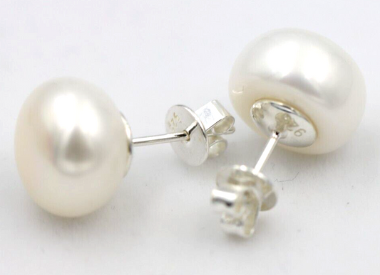 Sterling Silver 925 12mm Freshwater White Button Pearl Earrings