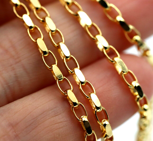 Genuine 9ct Yellow Gold Diamond Cut Oval Belcher Chain Necklace 45cm