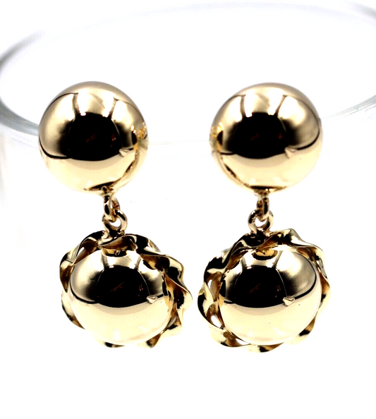 Genuine New 9ct Yellow, Rose or White Gold Double Ball Fancy Drop Half Ball Stud Earrings