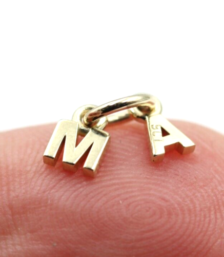 Genuine 9ct 9kt Genuine Tiny Small Yellow, Rose or White Gold Initial Pendant Charms A + M