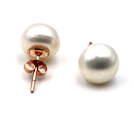 Genuine 9ct Yellow, Rose or White Gold White Button 10mm Freshwater Pearl Stud Earrings