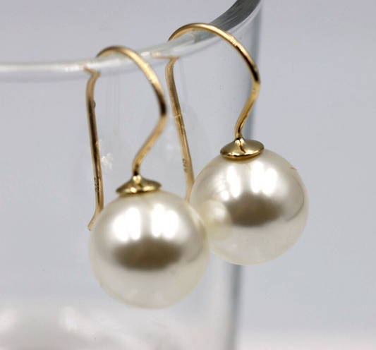Kaedesigns New 9ct 9k Yellow, Rose or White Gold 14mm Shell Pearl Ball Drop Earrings