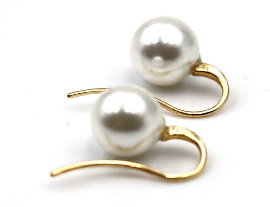 Genuine 9ct Yellow Gold 10mm White Shell Pearl Hook Earrings