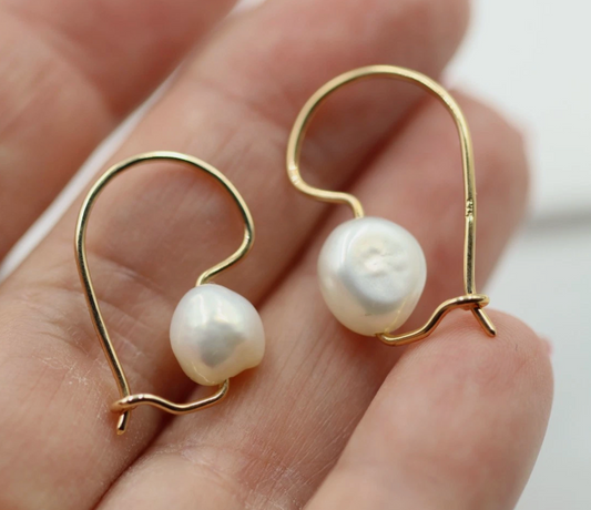 Genuine 9ct 9k 375 Yellow Gold Freshwater Cultured Pearl Baroque Pearl Earrings