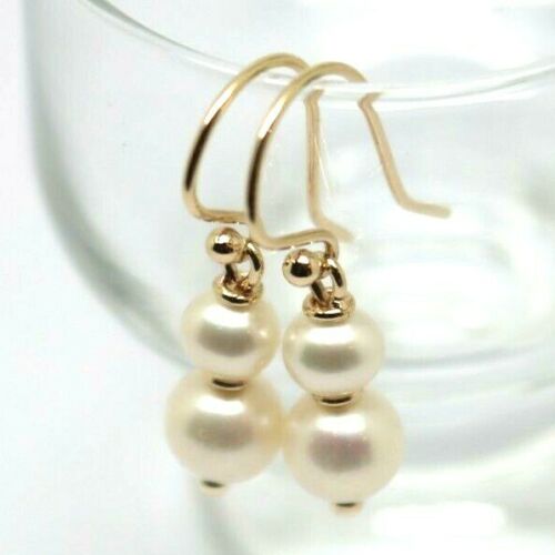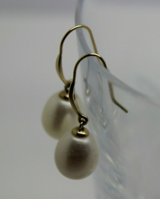 Genuine New 9ct Yellow Gold Oval Pearl Ball Earrings (continental hooks)