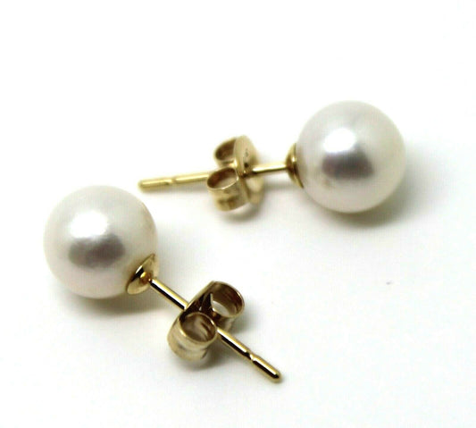 Genuine 9ct Yellow Gold 7mm White Pearl Ball Stud Earrings