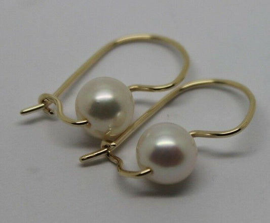 New 9ct 9k Yellow, Rose or White Gold 6mm & 8mm White Pearl With Open hooks Earrings