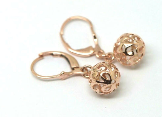 Genuine 9ct 9k Yellow, Rose or White Gold 10mm Filigree Ball Hook Continental Earrings