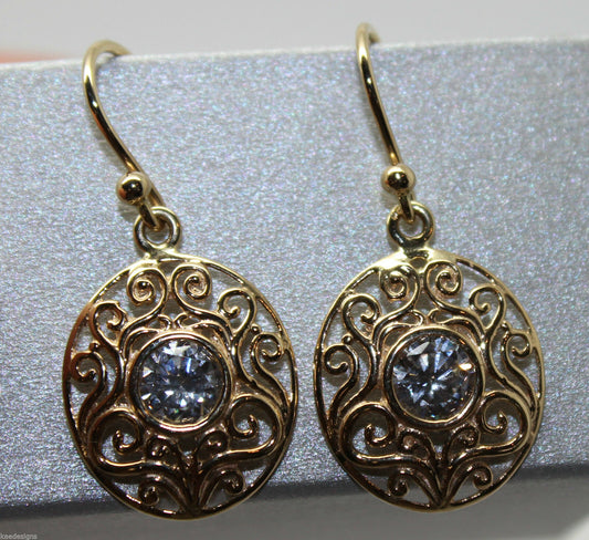 9ct 9k 375 Yellow, White, or Rose Gold Cubic Zirconia Oval Filigree Hook Earrings