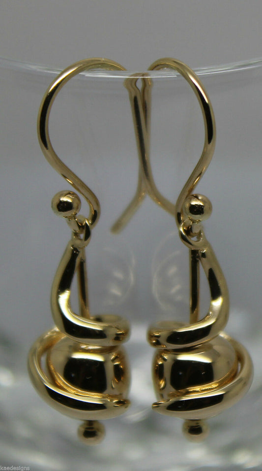 Kaedesigns, 9ct Yellow Or White Or Rose Gold 8mm Hook Swirl Ball Drop Earrings