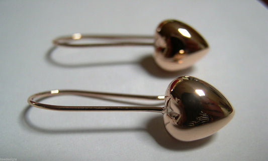 Kaedesigns New 9ct 9k Yellow, Rose or White Gold Dangle Puffed Heart Long Hooks Earrings