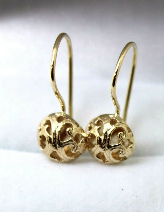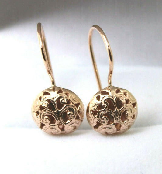 Genuine 9ct Yellow, Rose or White gold 10mm half ball filigree earrings
