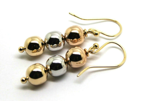 Genuine 9ct 9k Three 3 Ball 9ct Rose, Yellow & White Gold Ball Drop Ball Earrings