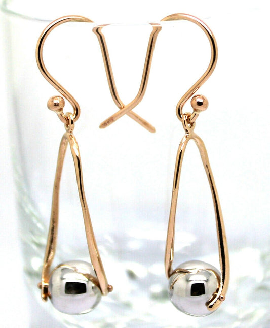 Genuine Large 9ct Rose & Yellow Gold Spinning Belcher Ball Earrings