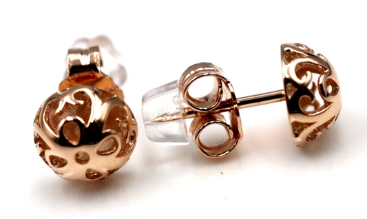Genuine 9ct Yellow, Rose or White Gold 8mm Filigree Stud Half Ball Earring