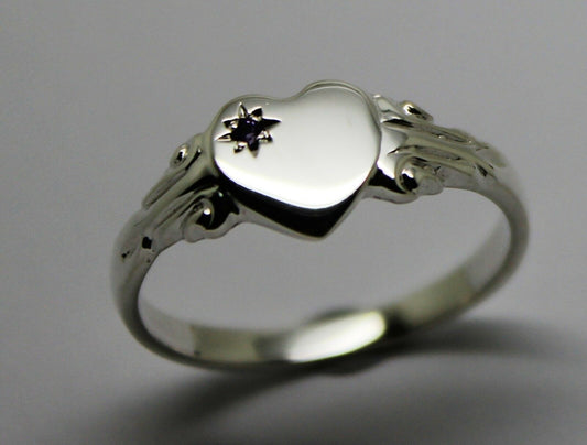 Genuine Full Solid New Sterling Silver Heart Amethyst Set Signet Ring Size N