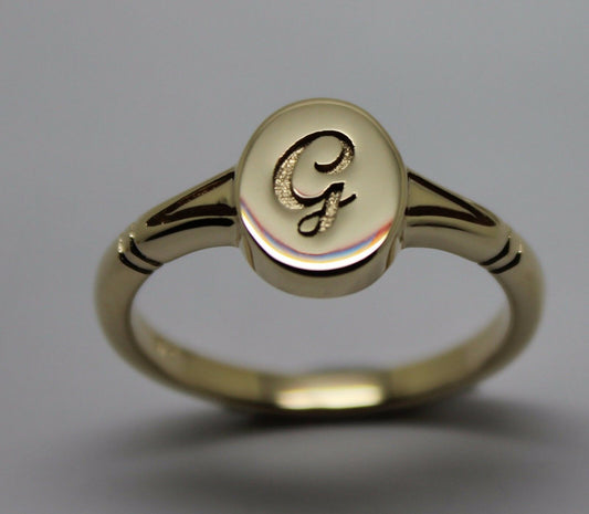 Genuine Full Solid 9ct Yellow, Rose or White Gold Oval Signet Ring Engraved With One Initial - Choose your size (sizes H to T)