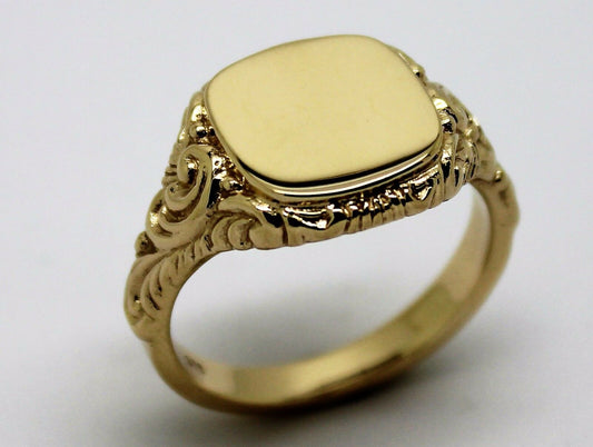 Kaedesigns Solid Genuine New 9ct Yellow Gold Square Engraved Signet Ring 335