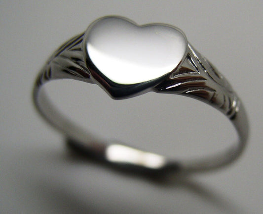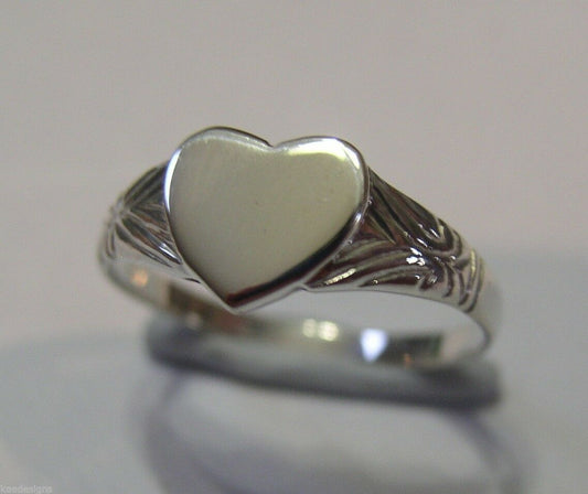 Kaedesigns, Genuine Solid 9ct 9kt 375 White Gold Heart Signet Ring Size S