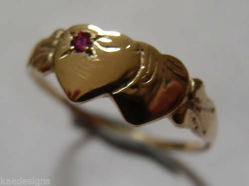 Kaedesigns, Genuine Childs 9ct Yellow, Rose or White Gold Double Heart Ruby Signet Ring