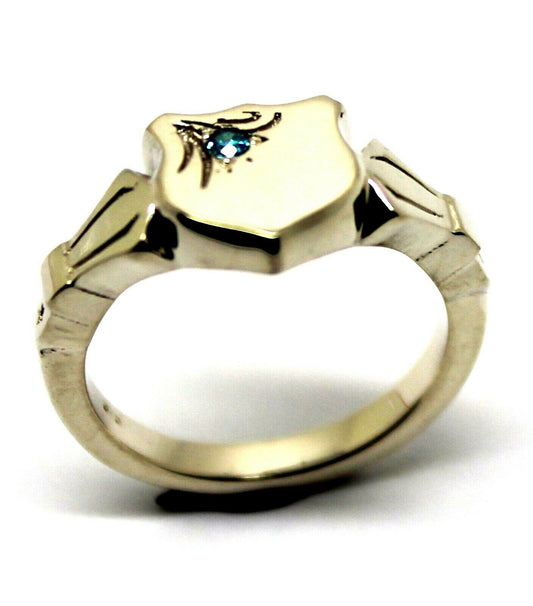 Genuine Solid 9ct 9kt White Gold Shield Signet Ring Set With Aqua Blue Cz