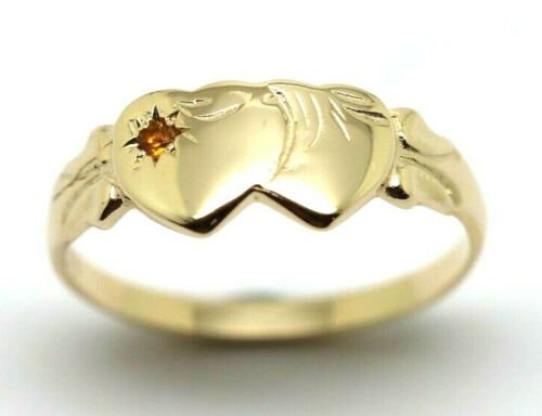 Genuine 9ct Yellow Gold Double Heart Yellow Topaz November Birthstone Signet Ring In your size
