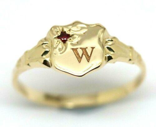 Size L 1/2 Genuine 9ct Small Yellow, Rose or White Gold Childs Ruby Shield Signet Ring