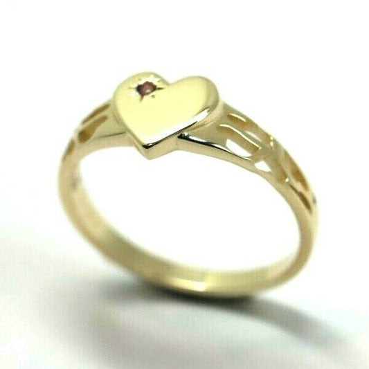 Size M Genuine 9ct 9K Yellow, Rose or White Gold Red Garnet Heart Signet Ring 265