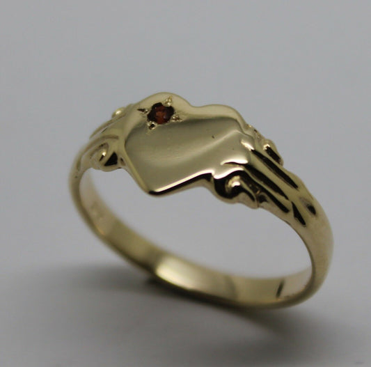 Genuine 9ct Small Yellow, Rose or White Gold Childs Ruby Shield Signet Ring + engraving of 1 initial