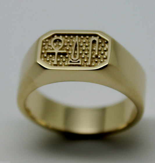 Size S 9ct Yellow, Rose or White Gold Ring Egyptian Hieroglyphic symbols - Success, Happiness & Health