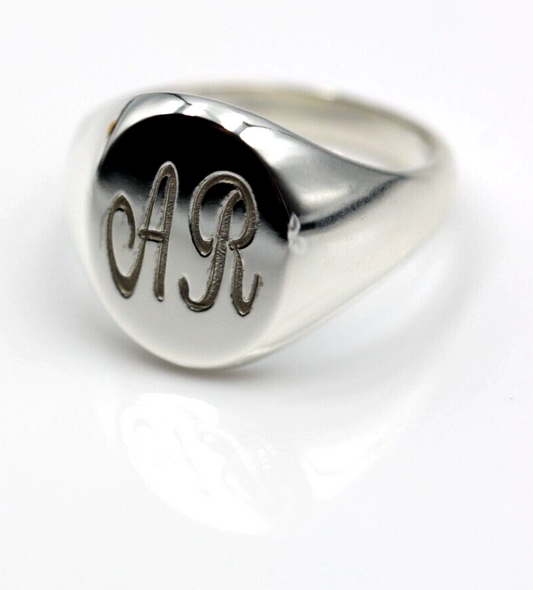 Genuine Heavy Solid Sterling Silver 925 Oval Men Signet Ring With Two Initial