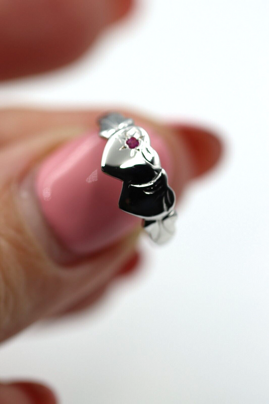 Size H Genuine 9ct 9K Yellow, Rose or White Gold Red Garnet Heart Signet Ring 265