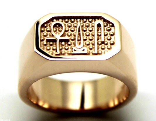Size O / 7 - Genuine 9ct Rose Gold Signet Ring Egyptian Hieroglyphic symbols-Success,Happiness,Health - Free post