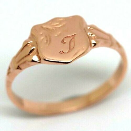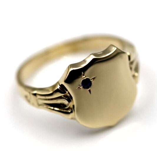 Size P, 9ct 9kt Yellow, Rose or White Gold Shield Signet Ring + Engraving of one initial