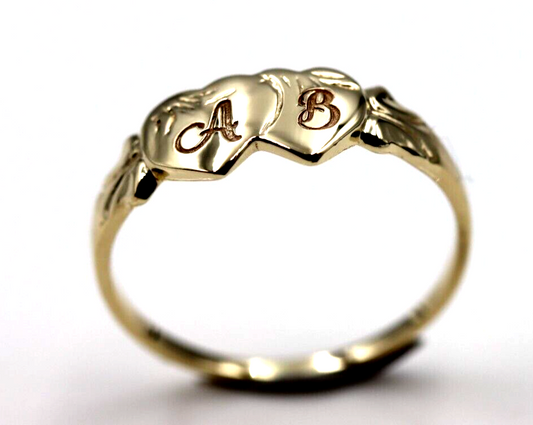 Size O Solid New 9ct 9Kt Yellow, Rose or White Gold Double Heart Signet Ring plus Engraving