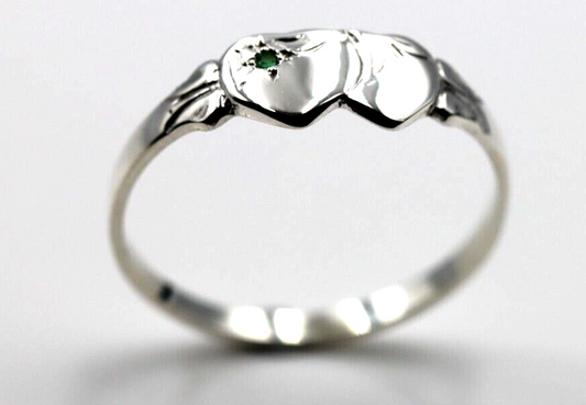 Size M - Solid New Sterling Silver Double Heart Signet Ring Emerald Set