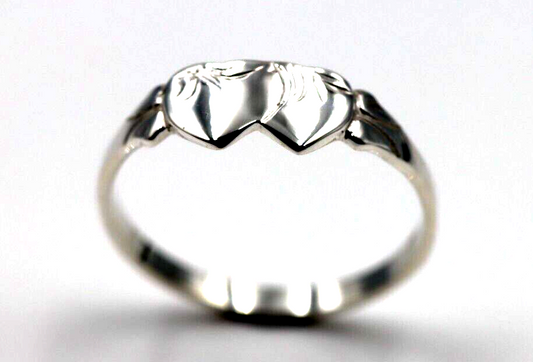 Size R - Kaedesigns, Solid New Sterling Silver Double Heart Signet Ring