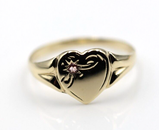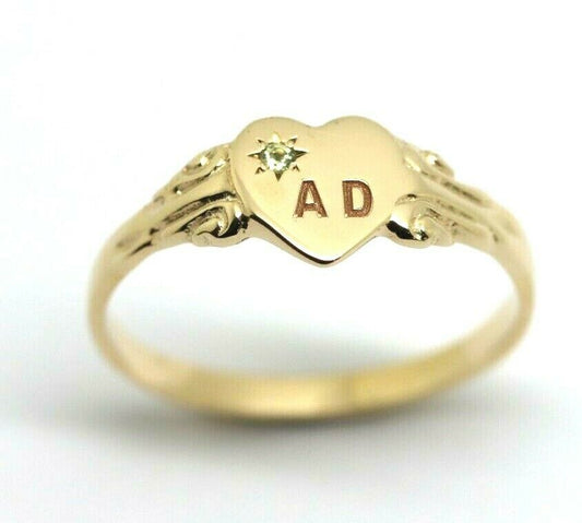 Size J, August Birthstone 9ct Yellow, Rose or White Gold 375 Green Peridot Stone Heart Signet Ring + Engraving