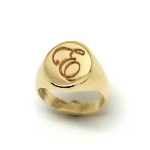 Solid Heavy New 9ct Yellow, Rose or White Gold Oval Signet Ring Size F +Engraved with letter E
