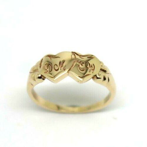 Genuine New 9ct 9k Yellow, Rose or White Gold Double Heart Signet Ring + Engraving