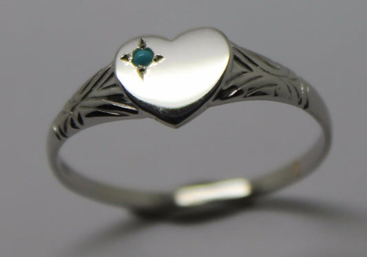 Size S, Genuine Solid 9ct 9k Blue Turquoise Yellow, Rose or White Gold Heart Signet Ring