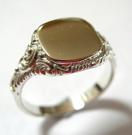 Genuine Large Mens 9ct White Gold Square Engraved Signet Ring