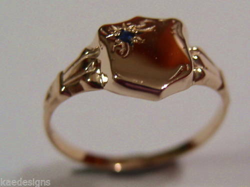 Genuine 9ct 9k Small Rose Blue Sapphire Shield Signet Ring - Choose your size