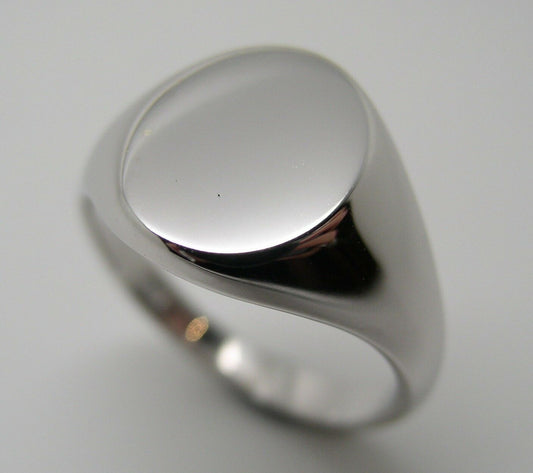 Heavy Solid 9ct 9k White Gold Oval Signet Ring plus engraving in your size