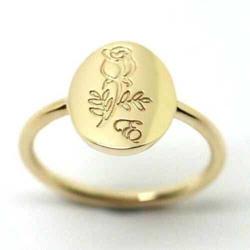Genuine Size 3.5 / G 1/4 9ct yellow, Rose or White gold oval signet ring with rose and initial