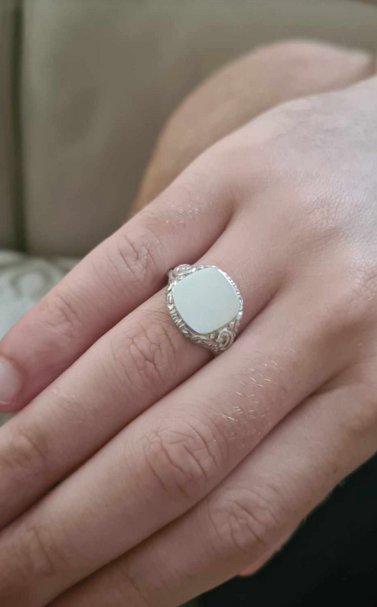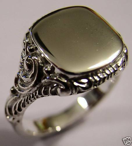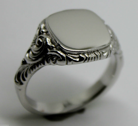 Kaedesigns, Size S Genuine Large Mens 9ct White Gold Square Engraved Signet Ring