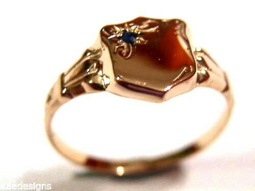 Size 7 / O 9ct 9k Small Yellow, Rose or White Gold Sapphire Shield Signet Ring