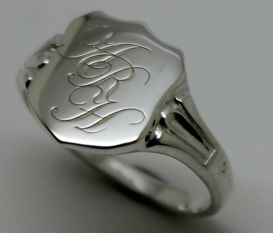 Sterling Silver Large Signet Ring Size 7 Plus Engraving Of Three Initials