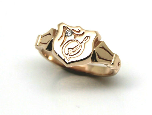 Genuine Solid 9ct 9kt Yellow, Rose or White Gold Shield Signet Ring Size R + Engraving + Diamond
